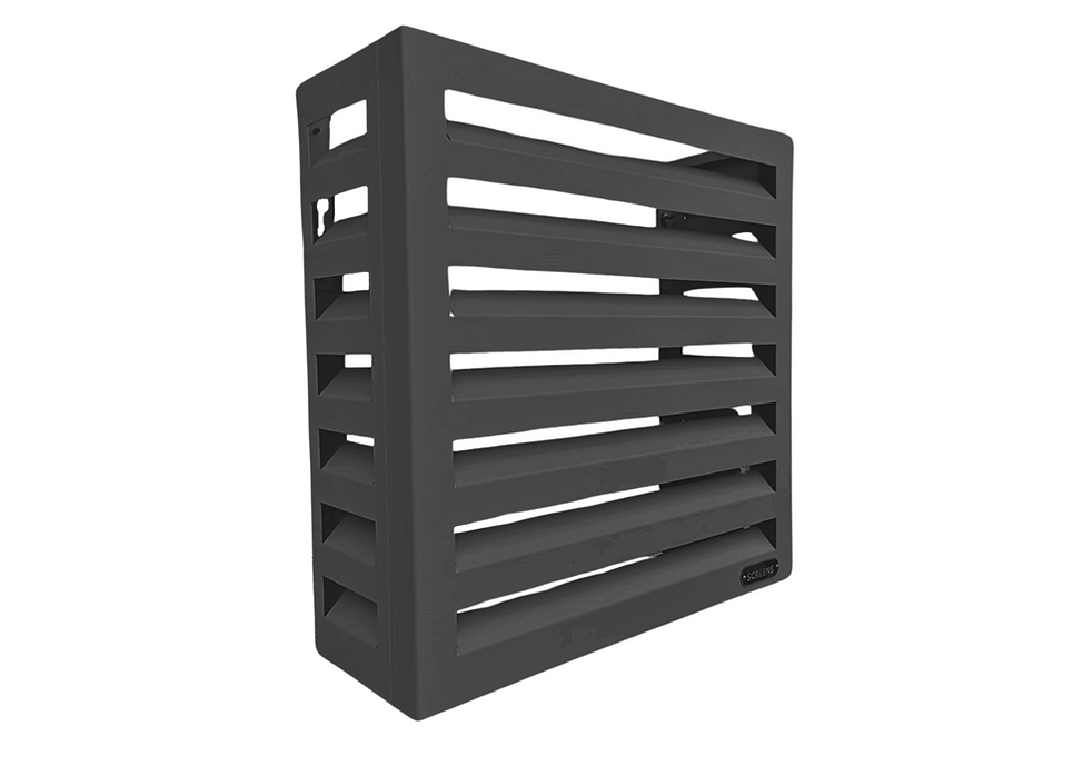 3 sided aluminium screen with horizontal louvres designed for wall mounting