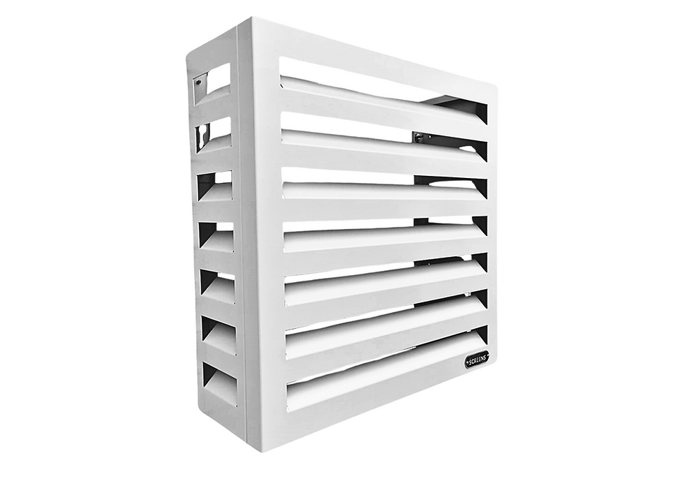 3 sided aluminium screen with horizontal louvres designed for wall mounting